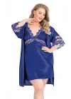 Lacivert Büyük Beden Saten Kadın Sabahlık Gecelik Takım