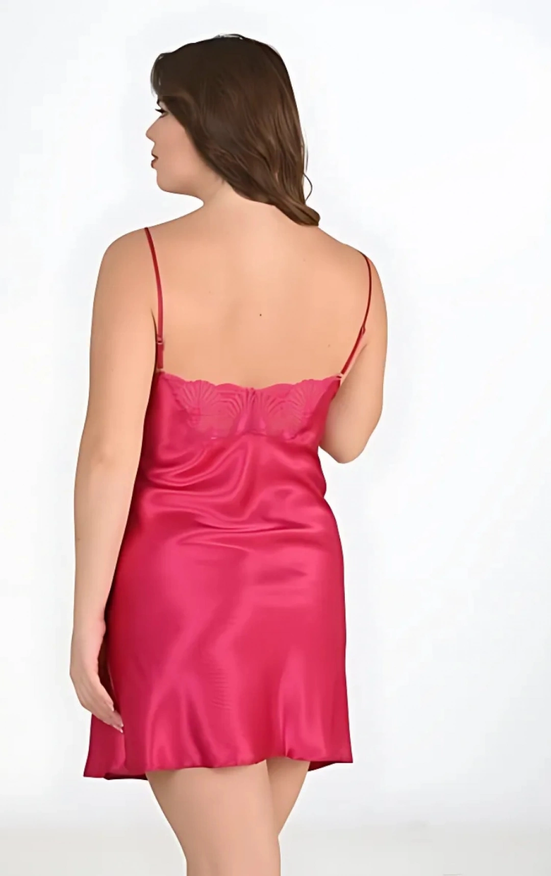 Kırmızı Büyük Beden Saten Kadın Sabahlık Gecelik Takım